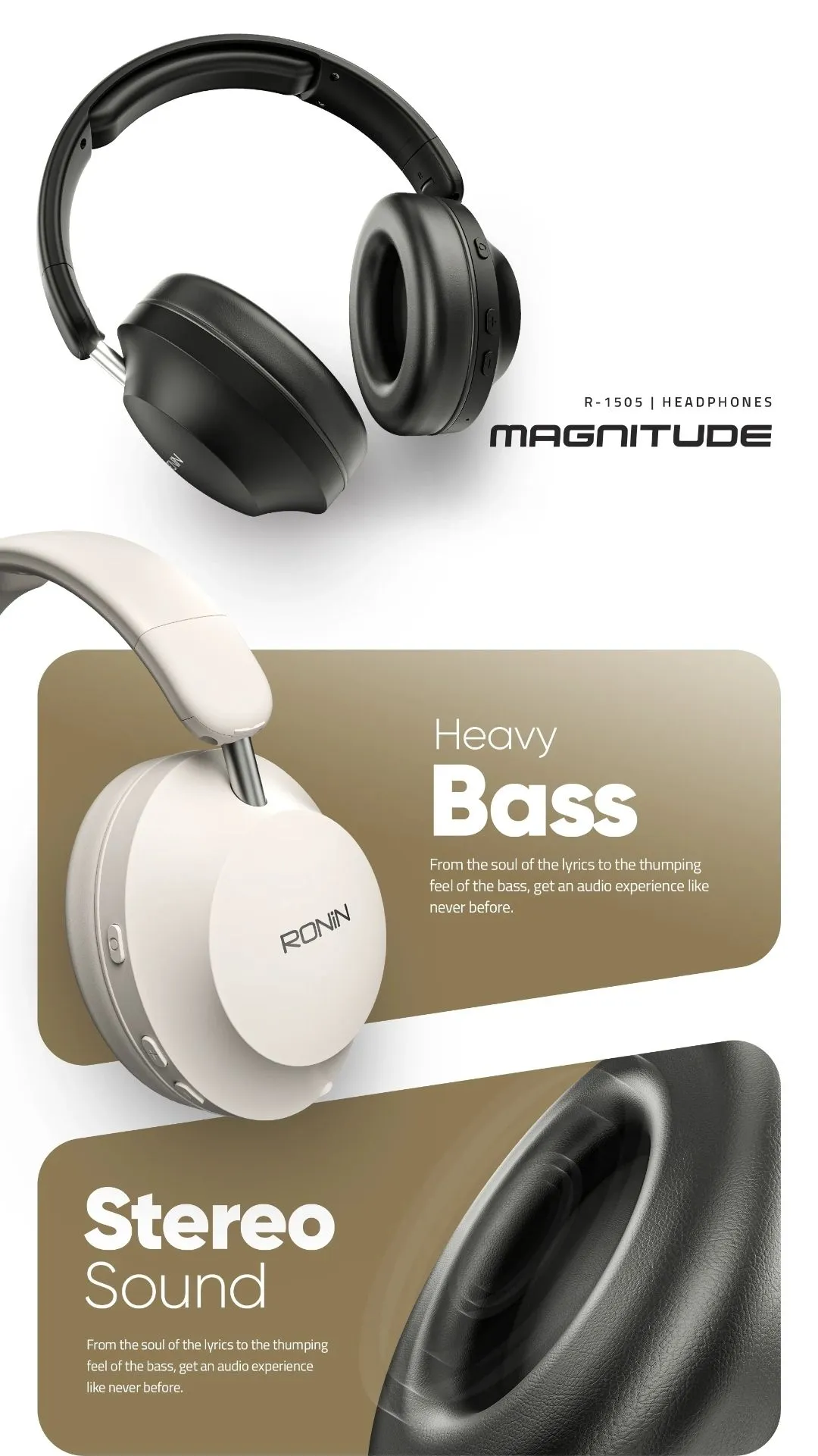 Choosing the Ronin R-1505 Magnitude Wireless Bluetooth Headphones means investing in quality sound and comfort. With their stylish design and powerful audio performance, these headphones are perfect for anyone looking to enhance their listening experience.